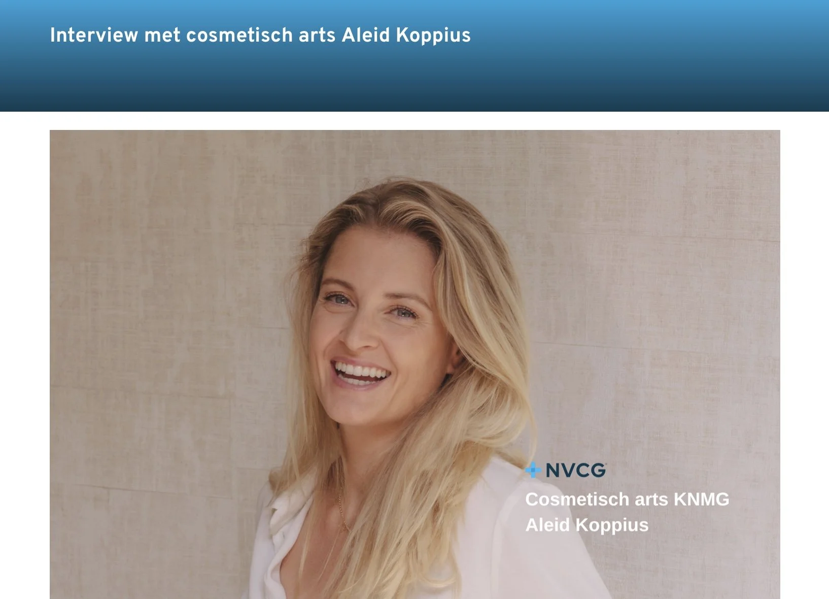 Wie is de persoon in de witte jas? De NVCG stelt haar cosmetisch artsen KNMG voor en belicht hun kernwaarden Kwaliteit & Veiligheid. Dit keer: Drs. Aleid Koppius.
